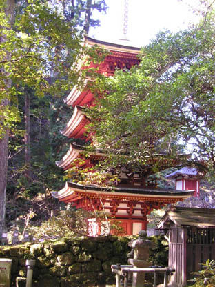 奈良の室生寺の五重塔を見に行きました。 TVでかわいい五重塔を見て、行きたいと思った矢先、 10年前のことです、台風が塔の横の杉を倒し、 大きな杉が塔に倒れ掛かって、塔を壊したのです。 2、3年後に復旧をしたとニュースをみて、行こう行こうと 思いつつ見送っていました。 室生寺は女人高野として有名ですが、日本で最も小さい 五重塔としても有名です。どうせ行くなら、秋の紅葉の時に と思って行きました。 とても、かわいい、五重塔でした。一辺が3mくらいでしょうか、 でも小さいことを感じさせない塔でした。階段の下から塔が 見えたときの感動がありました。大きな杉の林の中にひっそり と立っていました。再建した時もあまり、けばけばしくせずに、 壊れた当時のままに復元したことはうれしいことでした。 大師堂が階段上にあると案内にあったので、上りました。 当日は、秋晴れの気温の高い日でした。汗をかいて、500段 くらいの階段を登りました。ちょっときつかったです。 大師堂で家族の平安をお願いしました。 南無大師金剛、と。 紅葉がみごとでした。 久し振りの感動の一日でした。 2008年11月14日 |